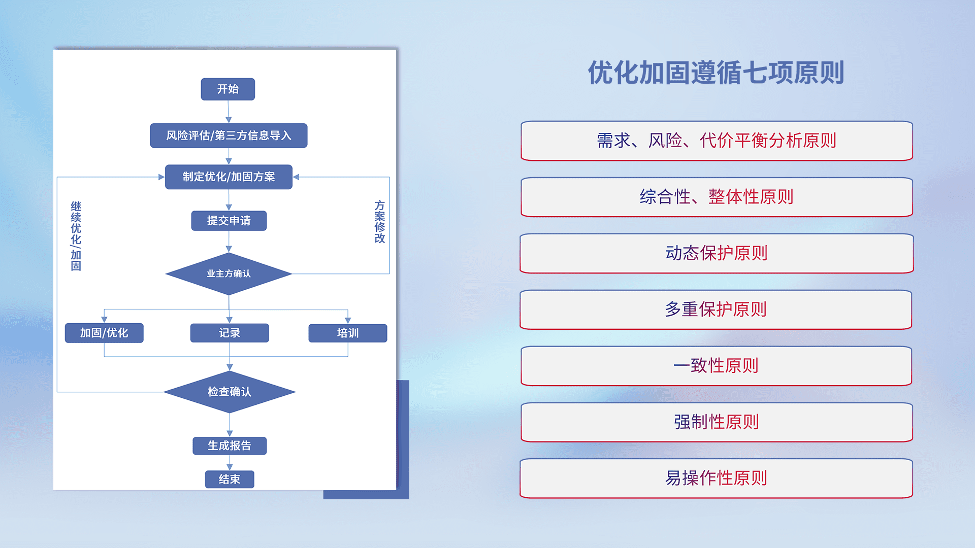 最大程度利用现有资产,,,,对评估发现的问题进行封堵与整改,,,防止漏洞被利用,,,提升整体网络安全性,,,为客户带来高标准的优化加固服务。。